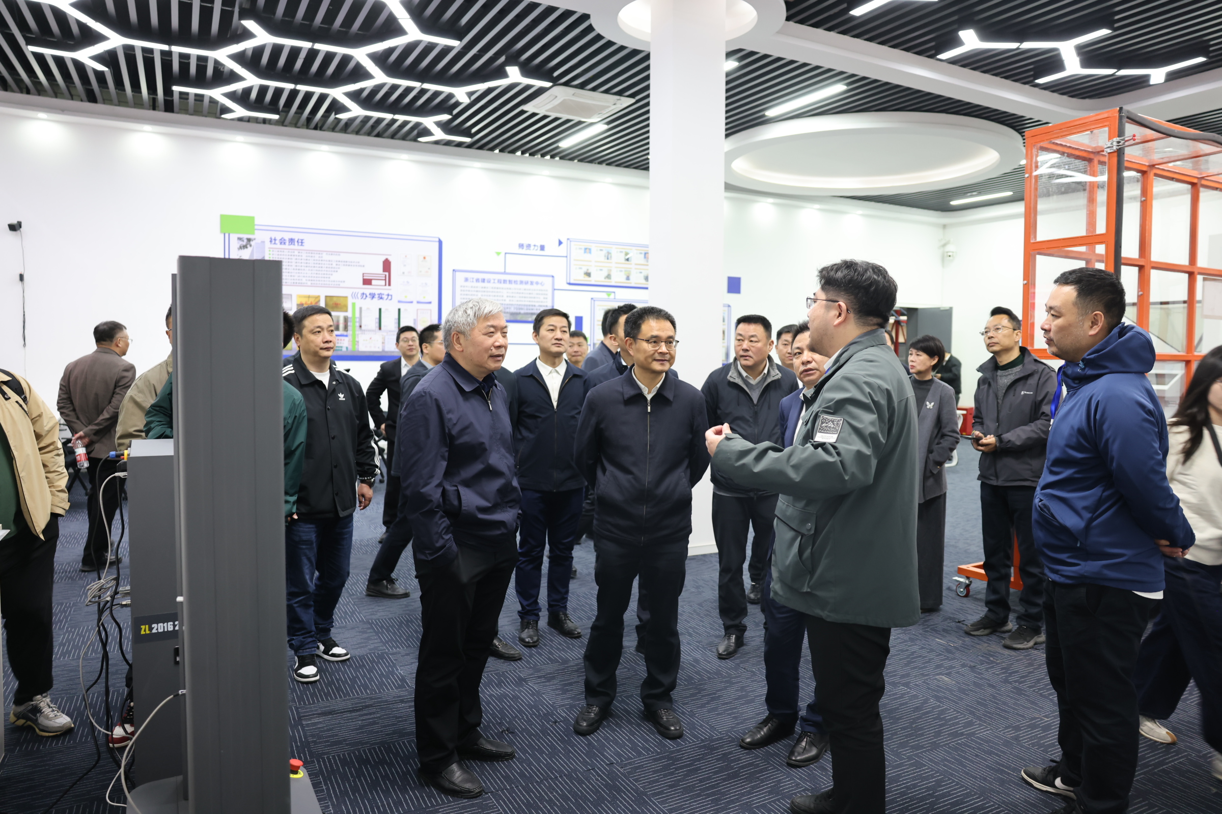 何青峰书记和陈先华书记共同为“浙江省建设工程数智检测研发中心”现场揭牌 91视频亚洲,到会人员实地参观了数智研发中心的相关检测设备情况。